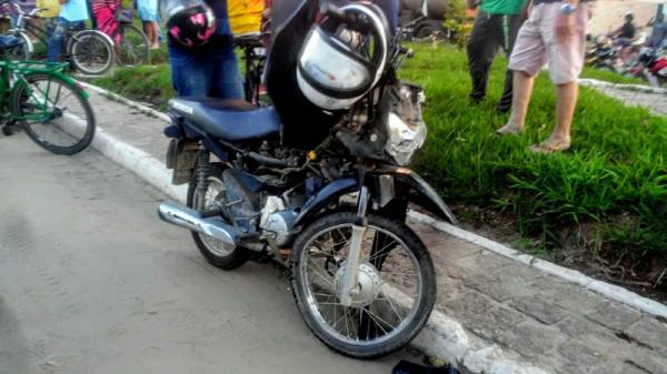 A colisão foi entre um veículo modelo GM/Onix cinza, placa PKB 6A55, e uma Honda/Pop 100 preta, placa policial PKU 8229.