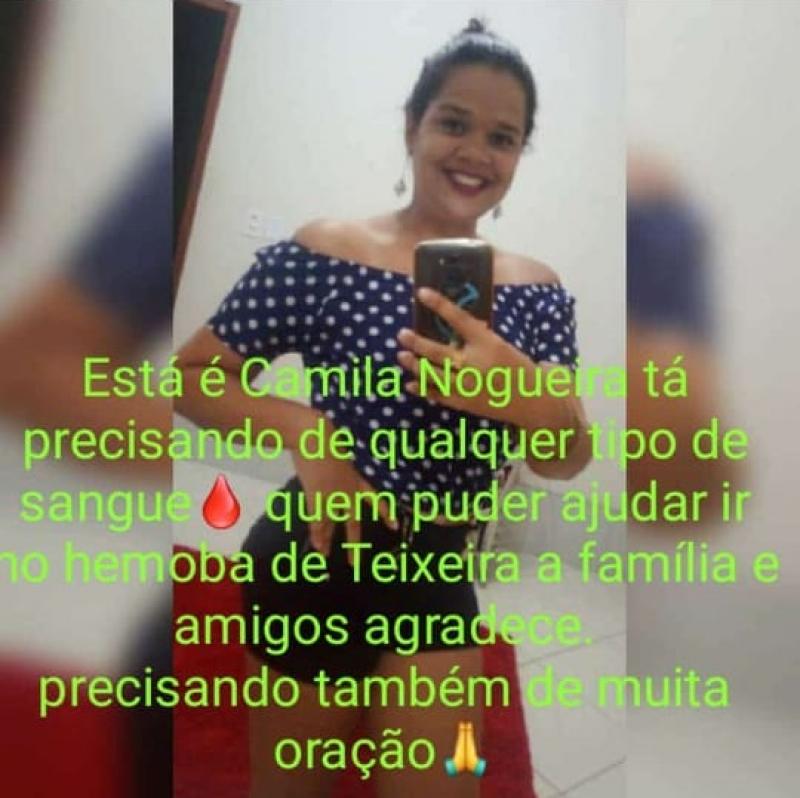 Um pedido feito nas redes sociais, nesta quarta-feira, 18 de novembro, por amigos e parentes de Camila Nogueira, moradora de Itabatã distrito de Mucuri, que está internada no Hospital Municipal de Teixeira de Freitas (HMTF), pede doação de sangue para a moça.