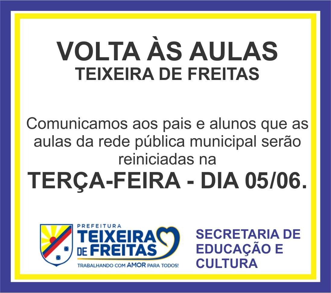 As aulas em Teixeira de Freitas voltam normalmente nesta terça-feira (05)