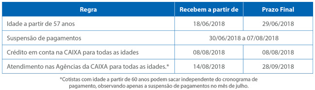 A Lei definiu que todos os cotistas do PIS poderão sacar seu saldo de cotas até o dia 28/09/2018. Ao todo aproximadamente 21,3 milhões de brasileiros terão direito ao saque das cotas. O valor total disponível ultrapassa R$ 28,1 bilhões.