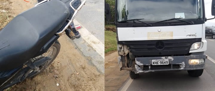 Colisão entre moto e caminhão na BR 101, deixa uma pessoa ferida