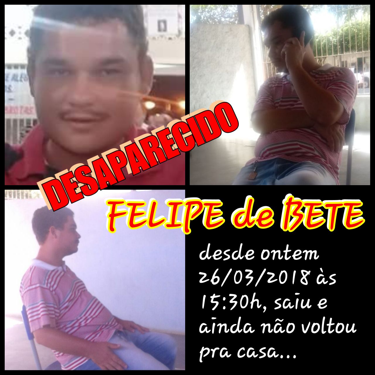 Qualquer informação sobre o seu paradeiro pode ser notificada pelo contato da Polícia Militar 190.