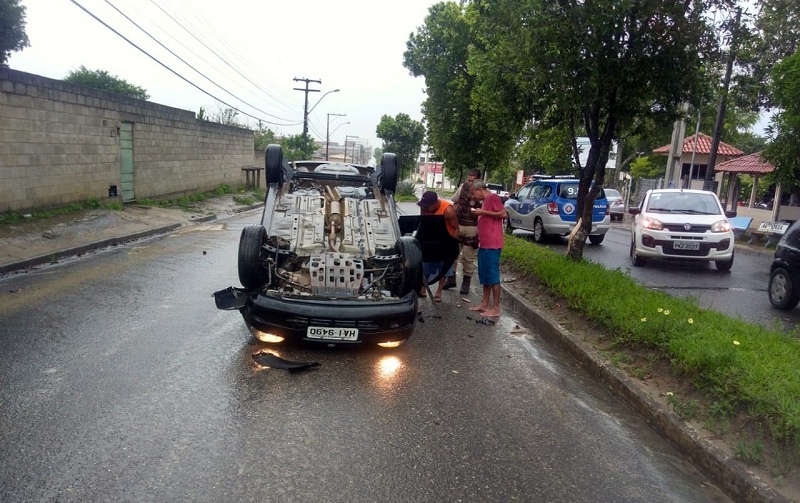 Motorista perde o controle e tomba veículo próximo à UNEB