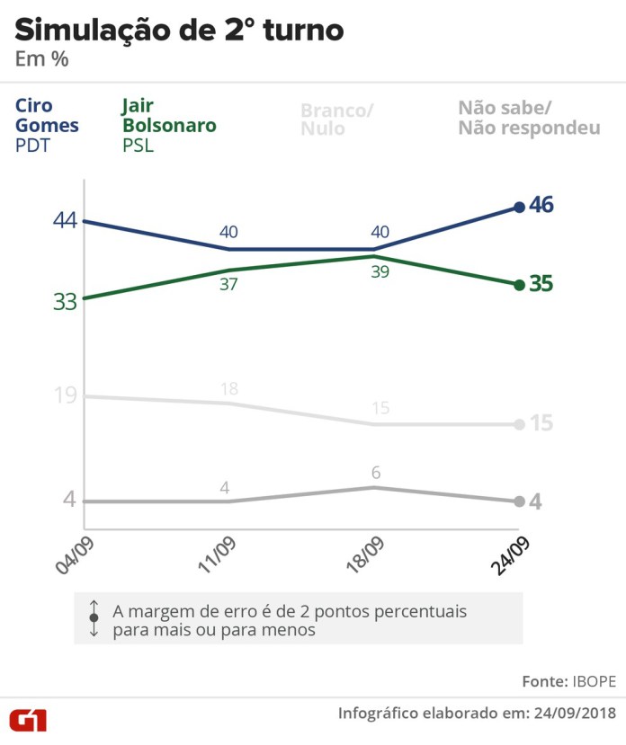 - Ciro Gomes (PDT): 11%