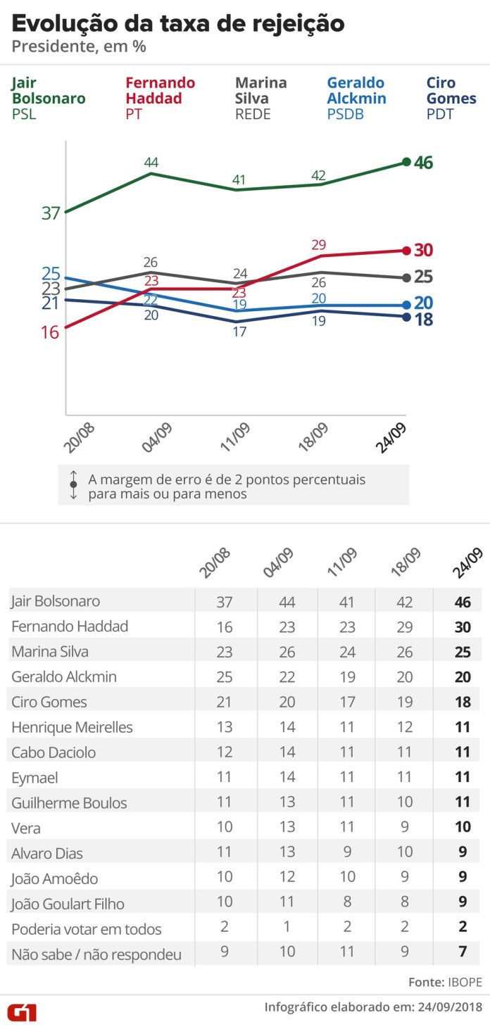 Pesquisa Ibope – 24 de setembro – Evolução da intenção de voto para presidente — Foto: Arte/G1
