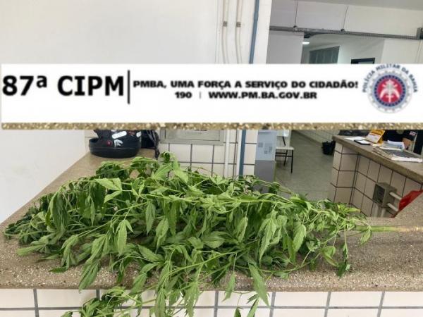 Mais cedo, por volta de 9h20, outra guarnição da 87ª Companhia Independente de Polícia Militar apreendeu um pé de maconha com cerca de um metro de cumprimento, que estava plantado em uma construção na Rua Lençóis, no bairro Caminho do Mar II.