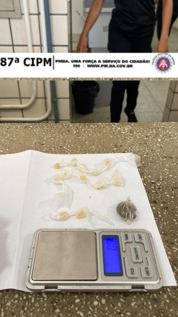 A Polícia Militar apreendeu no final da manhã dessa terça-feira (26), em Teixeira de Freitas, um papelote de maconha, 12 pedras de crack e uma balança de precisão. A ação foi na Rua Monte Belo, no bairro Luiz Eduardo Magalhães.