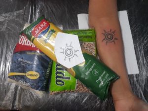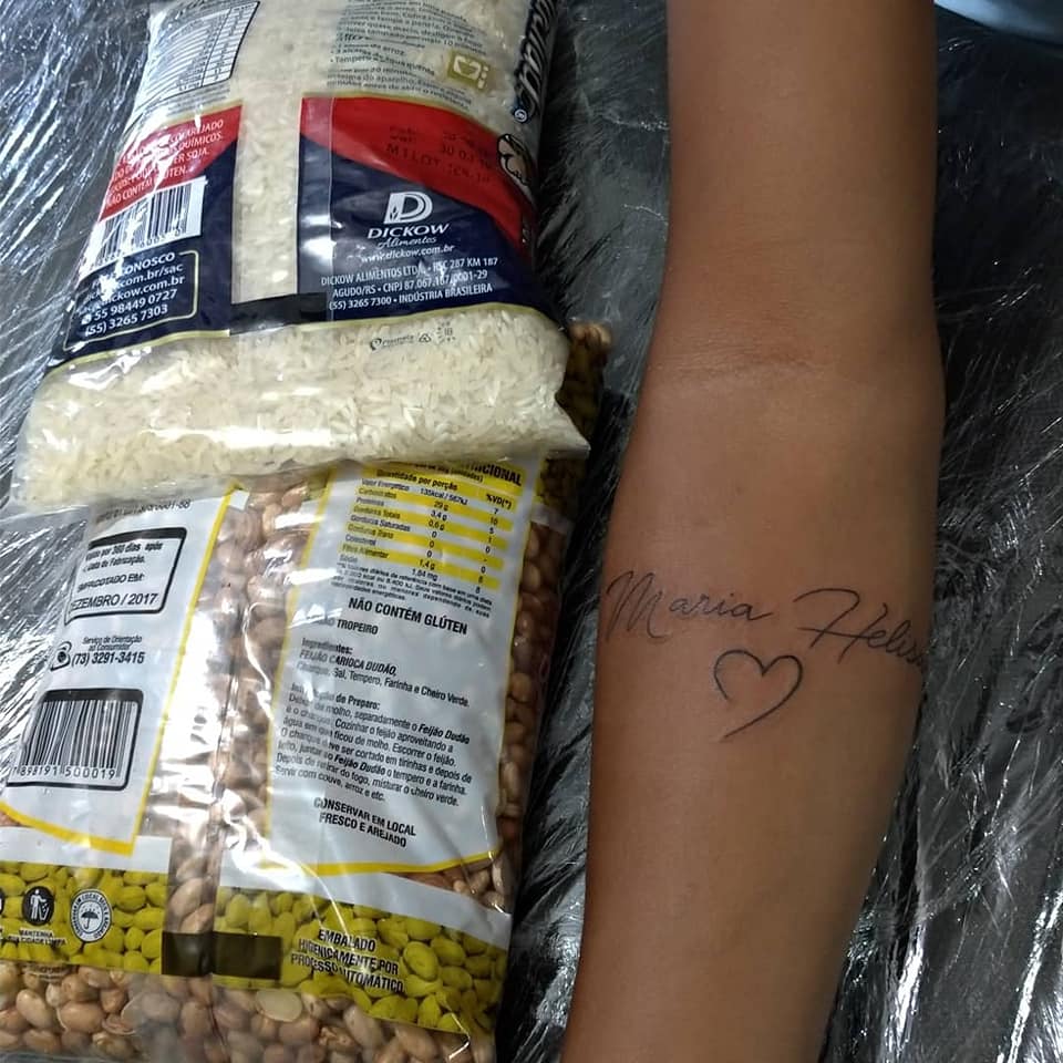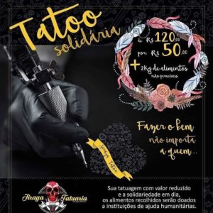 Diversos modelos de tatuagens que tem seu preço habitual por volta de 120 reais, estão sendo disponibilizadas por 50 reais + dois kg de alimentos não-perecíveis destinados a famílias em situação de vulnerabilidade.