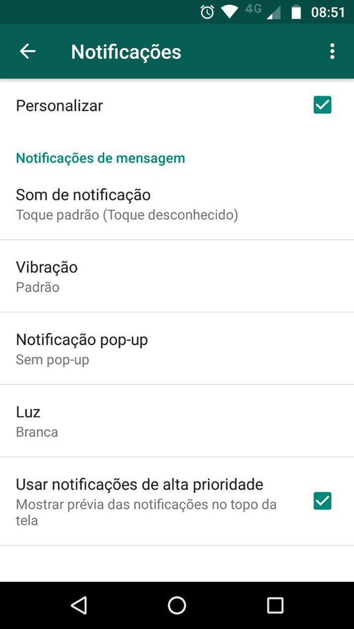A nova função trabalha de forma semelhante à possibilidade de fixar conversas e basta acessar a central de notificações no menu de um grupo ou conversa individual e ativar a opção “Usar notificações de alta prioridade”.