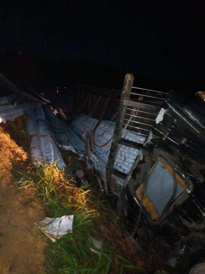 A mulher de Magno, Valéria viajava com ele e estava dormindo na cabine, ela morreu presa às ferragens, ambos são moradores de Viana no (ES).