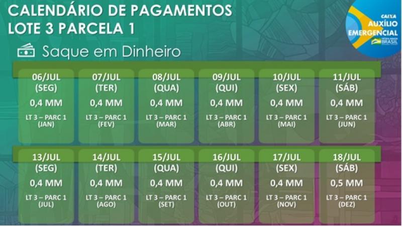 As datas, que seguem portaria a ser publicada e preveem o recebimento dos recursos por parte do Ministério da Cidadania, têm o objetivo de aprimorar o pagamento e evitar concentrações nos meios digitas e aglomerações nos pontos de atendimento. Nesta etapa de pagamentos da primeira parcela do auxílio emergencial, os beneficiários nascidos de janeiro a junho poderão movimentar digitalmente os valores pelo Caixa Tem a partir da terça-feira e os nascidos de julho a dezembro, a partir da quarta-feira.