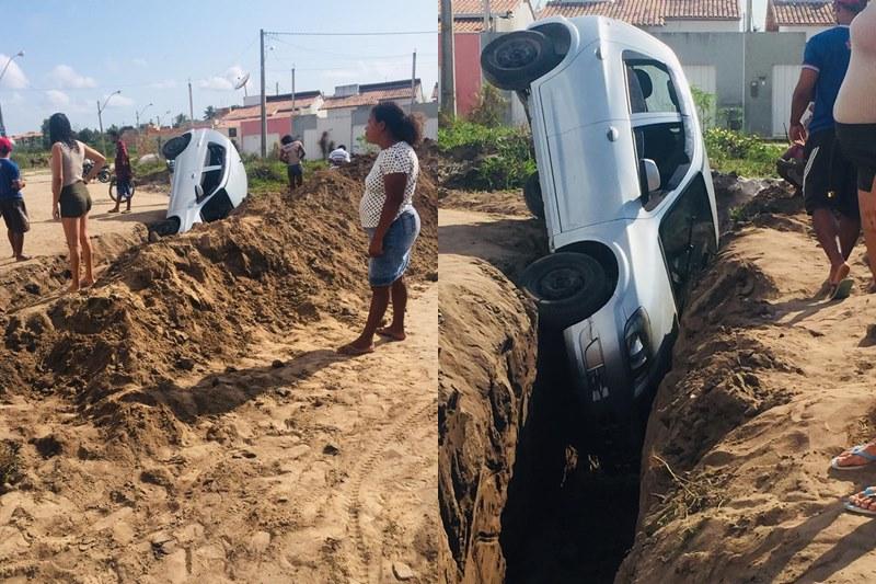 Carro cai em valeta no Padre José; local teve 3 acidentes em menos de 16 horas