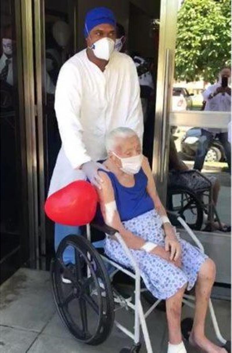 Uma idosa de 104 anos recebeu alta do Hospital de Ilhéus, sul da Bahia, na terça-feira, 15 de setembro, após se recuperar da Covid-19. A saída dela da unidade foi celebrada por familiares e funcionários, com música e balões coloridos.