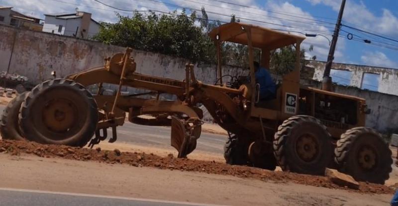 A nossa equipe flagrou a máquina trabalhando nas obras da BR 101 para a empresa BS Serviços, que justamente é a mesma que já havia vencido parte da licitação para realizar a urbanização das margens da rodovia, numa obra orçada em mais de R$ 3 milhões.