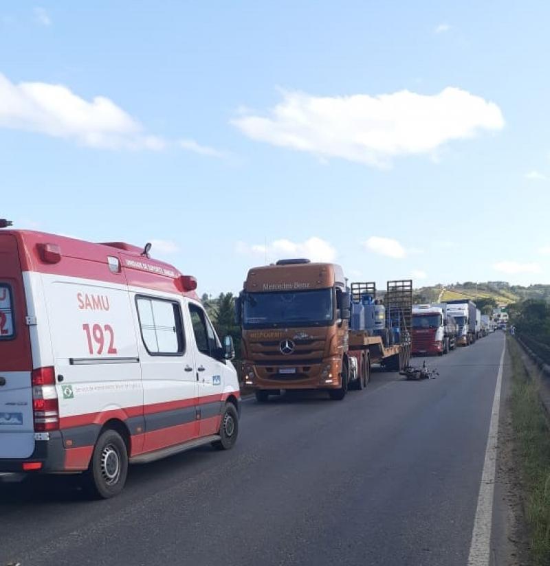 Um motociclista morreu na tarde de sábado, 26 de setembro, depois de chocar sua moto contra um caminhão baú, em cima da ponte da Várzea Alegre, na BR 101, em Itamaraju.