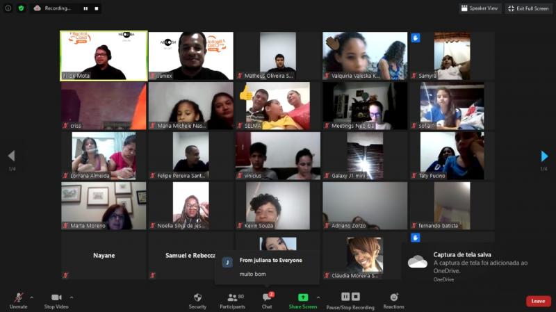 Por 2 horas, eles assistiram a vídeos enviados pelos integrantes do NTN, com orientação e apoio dos instrutores. As apresentações foram reunidas em 3 blocos.
