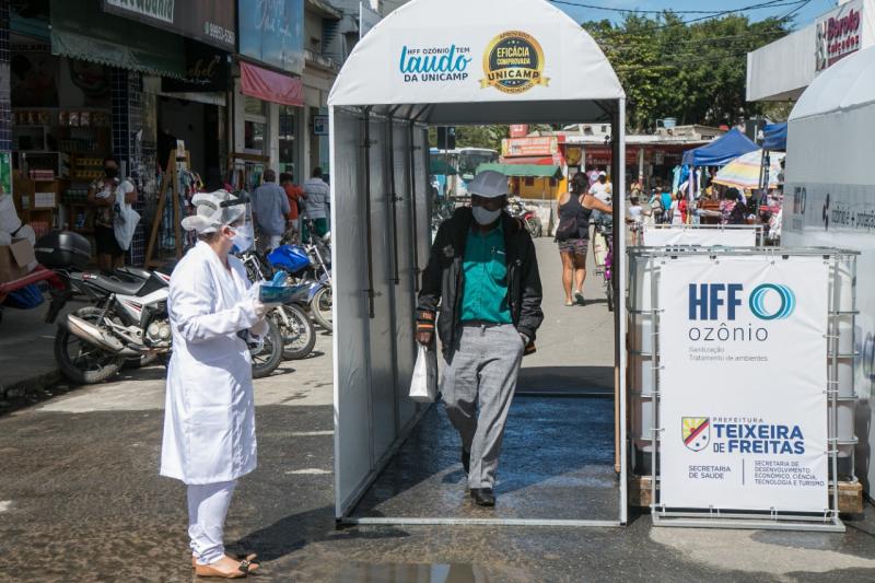 “O túnel chega através desta parceria, disponibilizando a tecnologia na luta contra o covid em Teixeira de Freitas. No equipamento é utilizado água ozonizada que inativa o vírus em minutos, um diferencial”, destacou o responsável da empresa HFF, Honório Friso Filho.