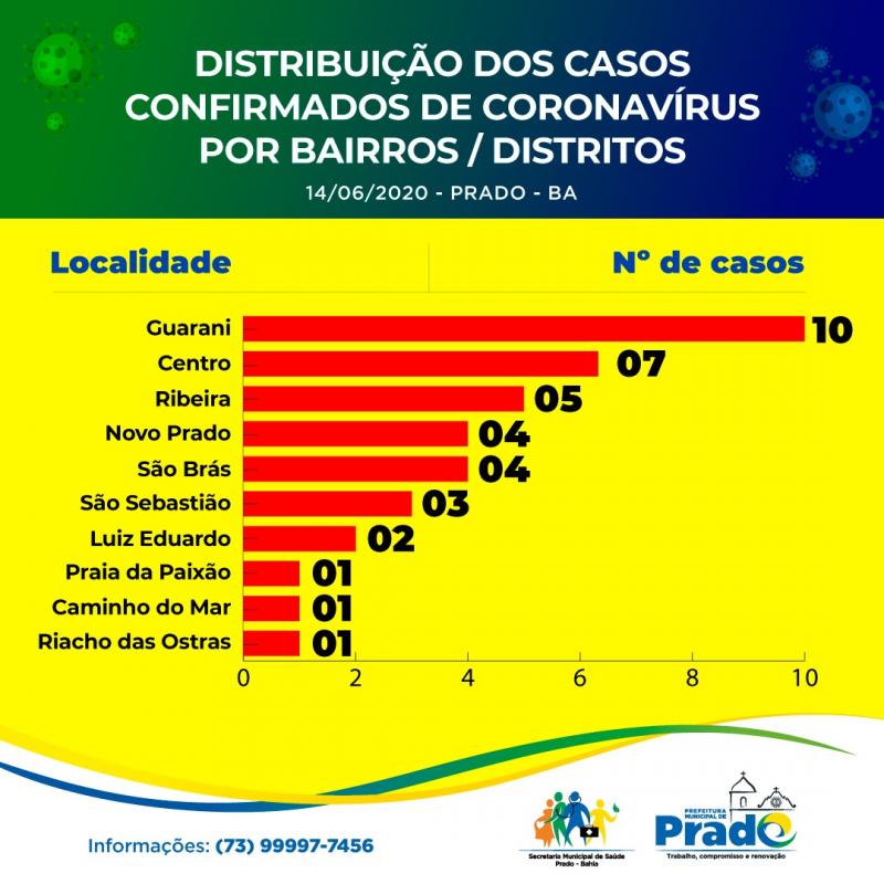 Cresce mais o número de casos positivos no município de Prado, agora são 38, como mostra o boletim epidemiológico deste domingo, 14 de junho.