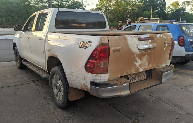 De posse da denúncia, os agentes consultaram o sistema e descobriram que a Hilux, que saiu de Nova Viçosa sentido Teixeira de Freitas havia sido tomada de assalto por homens armados.