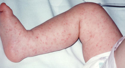 Pequenas manchas vermelhas pelo corpo e recusa alimentar;