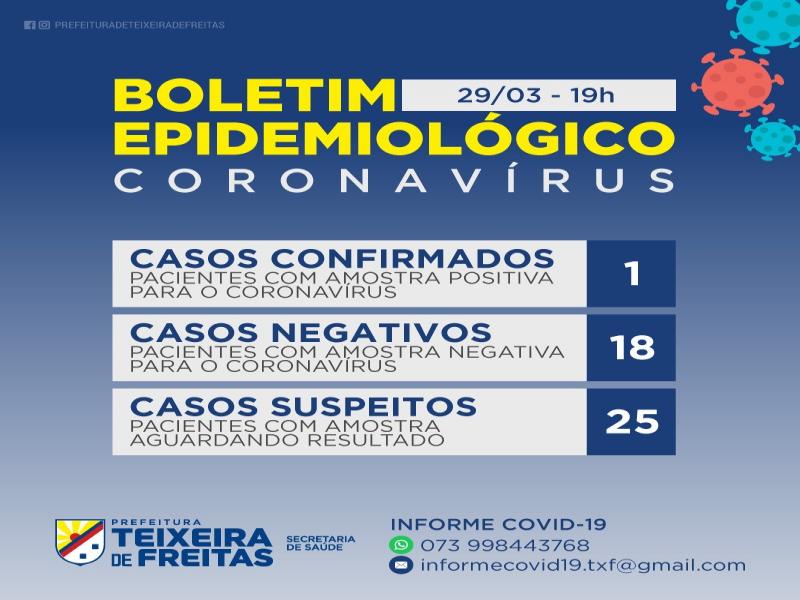 Os números atuais são de: 1 confirmado, 18 descartados, 25 casos suspeitos aguardando resultado. Totalizando, 44 casos notificados. Em Teixeira de Freitas, a vigilância epidemiológica está cumprindo todos os protocolos e adotando as medidas de precaução cabíveis.
