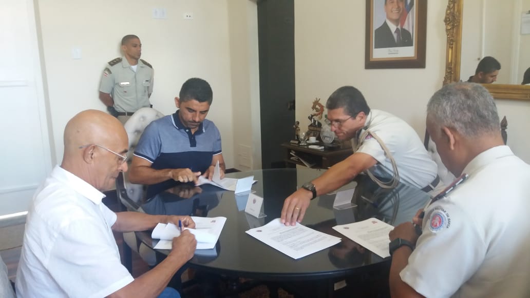 Além do prefeito, Calixto Antônio Ribeiro, e do comandante-geral da Polícia Militar no Estado da Bahia coronel, Anselmo Alves Brandão, o secretário municipal de Educação, Sérgio Mendes e outros oficiais militares testemunharam a parceria estabelecida.