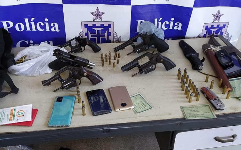 Além das ordens judiciais cumpridas contra pai e filhos, mandados de busca e apreensão localizaram, em imóveis, uma pistola calibre 380, quatro revólveres calibre 38, carregador e 200 munições. Nos locais, duas mulheres acabaram presas em flagrantes e um adolescente acabou apreendido.