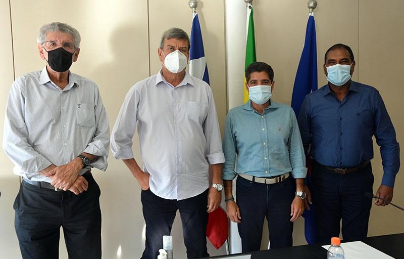 O prefeito eleito de Mucuri, Roberto Carlos Figueiredo Costa, o Robertinho (DEM) e os reeleitos de Feira de Santana e Vitória da Conquista, Colbert Martins e Herzem Gusmão, respectivamente, ambos do MDB, participaram nesta quinta-feira, 3 de dezembro, de uma reunião com o prefeito de Salvador, Antônio Carlos Magalhães Neto, o ACM Neto, que também é presidente nacional do Democratas.