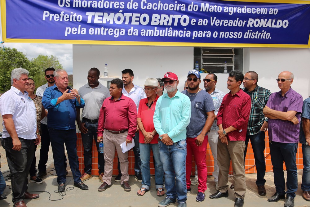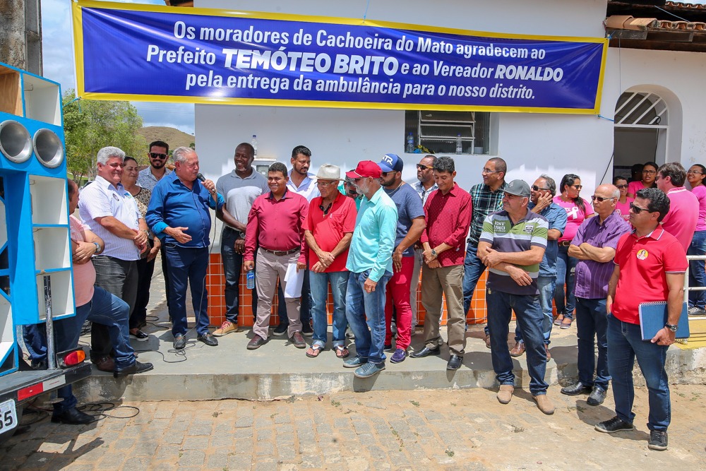 Com presença da população, autoridades, secretários municipais e vereadores, o prefeito Temóteo Alves de Brito, fez a entrega de ambulância no distrito de Cachoeira do Mato na manhã desta terça-feira, 02 de outubro. O veículo é uma reivindicação dos moradores e teve o apoio do vereador Ronaldo Baitakão.