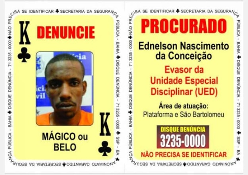O Rei de Paus do Baralho do Crime da Secretaria da Segurança Pública (SSP-BA), Ednelson Nascimento da Conceição, mais conhecido como Mágico, morreu após um confronto com a polícia durante uma operação na madrugada desta sexta-feira (27), na localidade de Jauá, cidade de Camaçari, onde estava escondido.