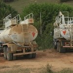 Nossa reportagem flagrou o momento exato, em que carros pipas da empresa Suzano faziam o abastecimento de água nos córregos para molhar as plantações de eucaliptos.