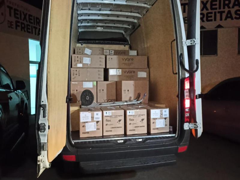 O município de Teixeira de Freitas recebeu, na noite deste sábado (06), 10 ventiladores de UTI, mais conhecidos como respiradores. Junto a estes, foram entregues 10 respiradores de transporte. Os equipamentos, que foram enviados pelo Ministério da Saúde do Governo Federal, em uma ação conjunta com a empresa Suzano Papel e Celulose, são destinados ao Hospital de Campanha do Município.