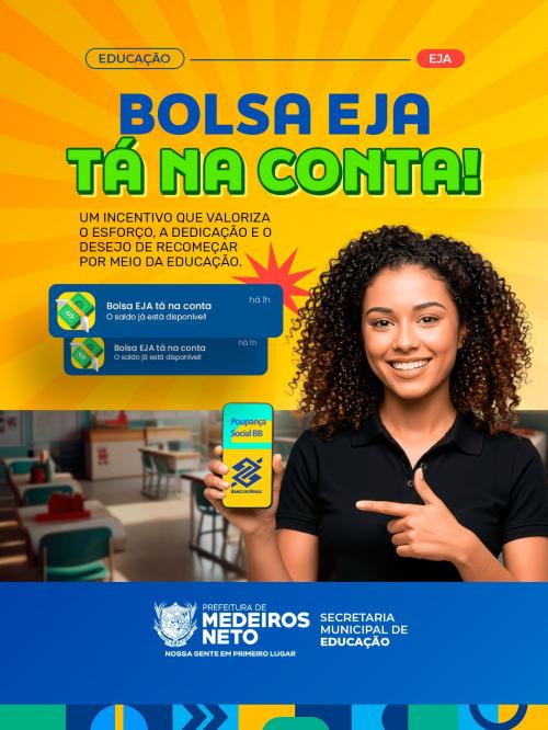 A Prefeitura de Medeiros Neto, por meio da Secretaria Municipal de Educação, concretizou mais um importante avanço no fortalecimento da Educação de Jovens e Adultos (EJA). O pagamento da tão aguardada Bolsa EJA foi creditado nas contas dos estudantes nesta semana, representando um forte incentivo àqueles que decidiram retomar ou concluir seus estudos.