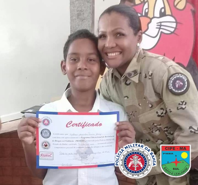 Na manhã desta quarta-feira (13), a CIPE/Mata Atlântica (CAEMA) realizou a Formatura do Programa Educacional de Resistência às Drogas e à Violência (PROERD). A solenidade contou com 250 alunos do 5º ano das escolas municipais: Ailton Marques de Souza, Jorge Amado e Oscar Cardoso localizadas no distrito de Posto da Mata, Nova Viçosa.