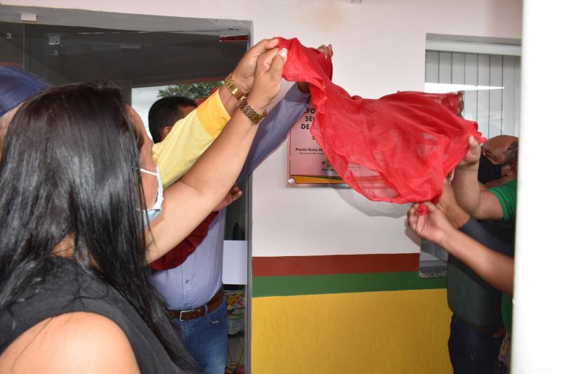 O descerramento da placa e faixa inaugural, na manhã de segunda-feira (22), marca o início de um novo tempo na sede da Secretaria de Educação com a inauguração de novas salas para atendimento jurídico, almoxarifado, CEAMEI, censo escolar, cozinha, departamento de recursos humanos, equipe pedagógica, refeitório, reuniões, setor de merenda, transporte escolar, além de novos banheiros adaptados às necessidades especiais (masculino e feminino), estacionamento e paisagismo.