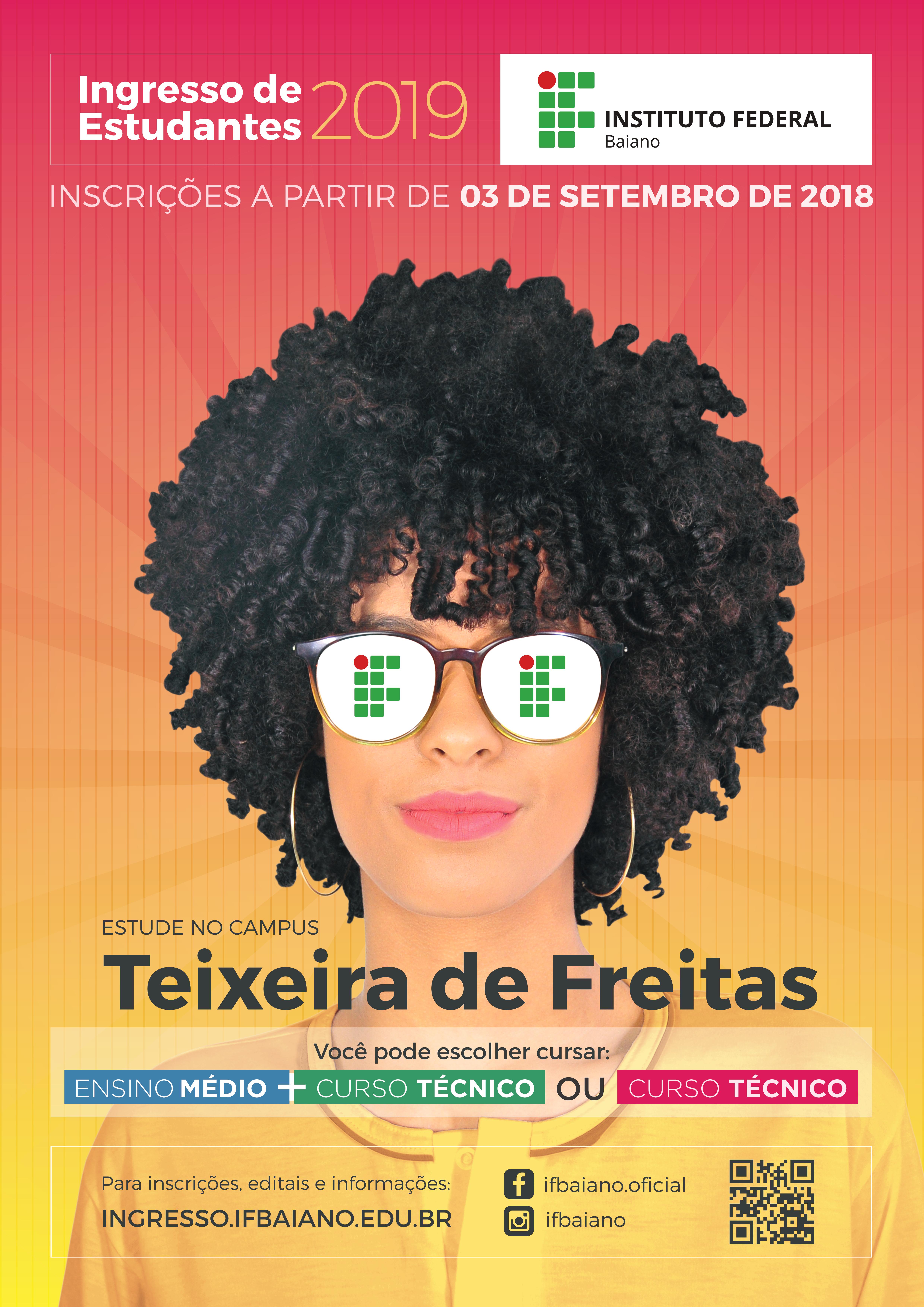 Estarão abertas, a partir do dia 3 de setembro, as inscrições para o Processo de Ingresso 2019 do Instituto Federal de Educação, Ciência e Tecnologia Baiano. A oportunidade é para estudantes que concluíram o Ensino Fundamental e desejam cursar o Ensino Médio juntamente com um curso técnico (Integrado) ou para quem já concluiu o Ensino Médio e deseja fazer um curso técnico (Subsequente).