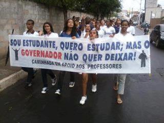 Eram faixas e cartazes, que mostravam a insatisfação do povo teixeirense com o governador do estado da Bahia, os dizeres dos cartazes e faixas, falavam sempre da falta de diálogo do governador com os professores estaduais, que estão em greve há mais de 50 dias e pelo o que o governador falou na entrevista a imprensa, será muito difícil que essa greve tenha um fim por tão cedo.[jwplayer config=”Video Paginas” mediaid=”8861″]