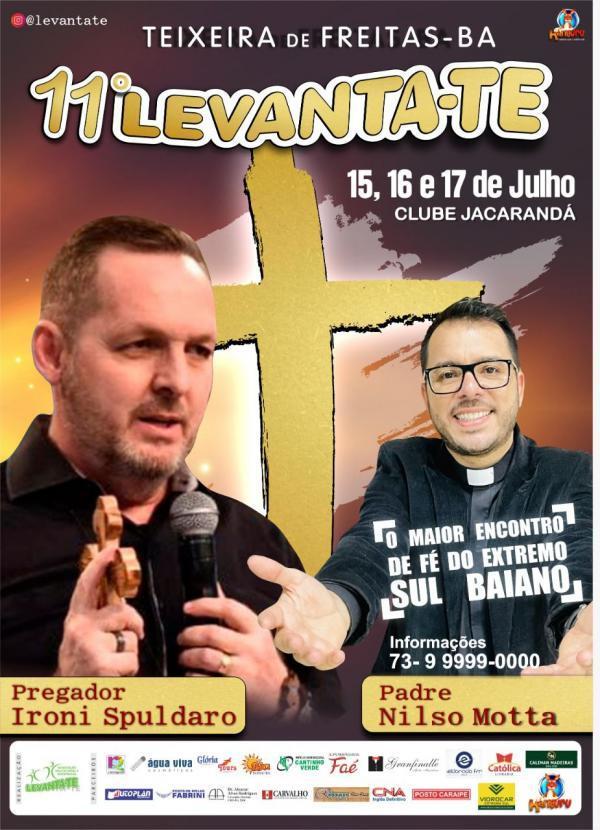 Teixeira de Freitas: Vem aí o maior encontro de fé do extremo sul Baiano, o 11°Levanta-te, esse evento acontecera nos dias 15, 16 e 17 de julho no clube Jacarandá, terá a participação do pregador Ironi Spuldaro e do padre Nilso Motta.