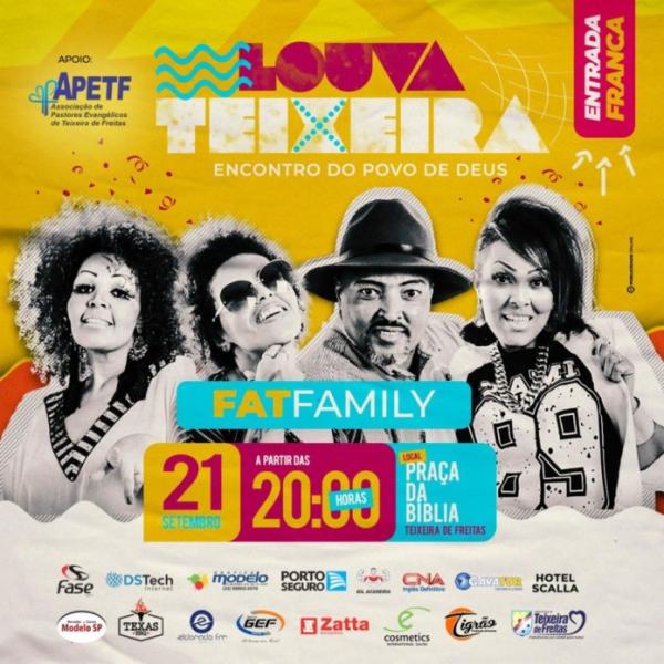 O evento, denominado “Louva Teixeira”, contará com a participação do conjunto musical Fat Family, com notoriedade no Brasil e no mundo. A entrada é franca.