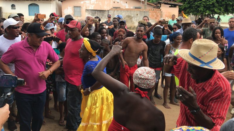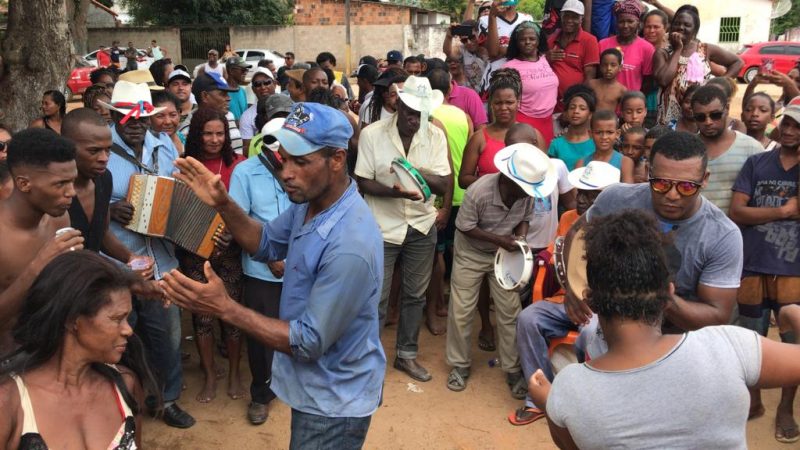 O povo na rua para assistir à uma das mais antigas tradições dos moradores de Rancho Alegre, distrito do município de Caravelas.