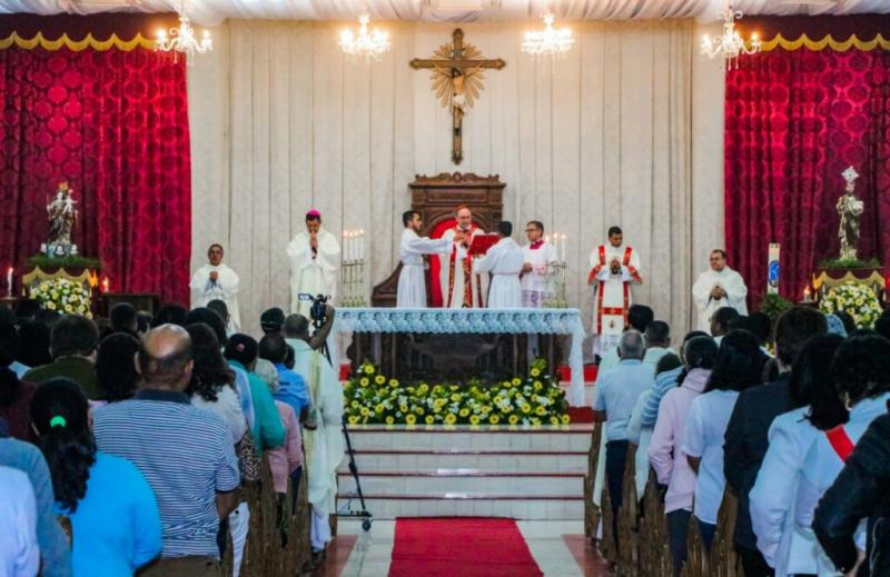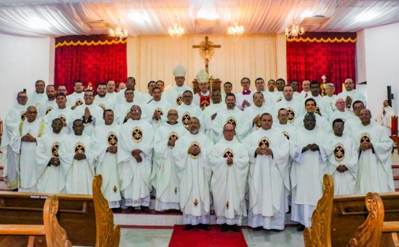 A Catedral São Pedro recebeu neste sábado (23), membros do clero, autoridades políticas e comunidade de religiosos consagrados e leigos para celebrar o Jubileu de Diamante da Diocese de Teixeira de Freitas/Caravelas. O bispo diocesano, dom Jailton de Oliveira Lino, acolheu o cardeal, Dom Sérgio da Rocha, Arcebispo de Salvador e Primaz do Brasil que presidiu a Missa, com a participação de párocos das paróquias da Diocese.