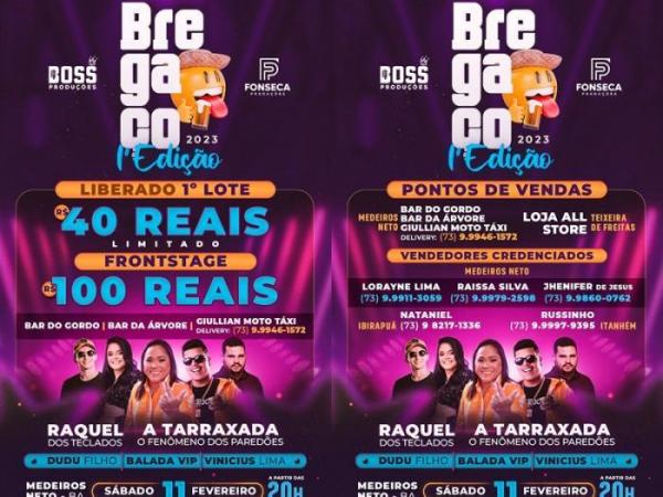 Primeiro lote do 1º Bregaço em Medeiros Neto, com Raquel dos Teclados e a Tarraxada, já estão à venda