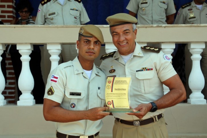 Como representante do Comando-geral da PMBA presente no evento, esteve o Cel. Manoel Xavier de Souza Filho, paraninfo da turma de soldados. Ele falou sobre a união da turma e do trabalho de treinamento oferecido.