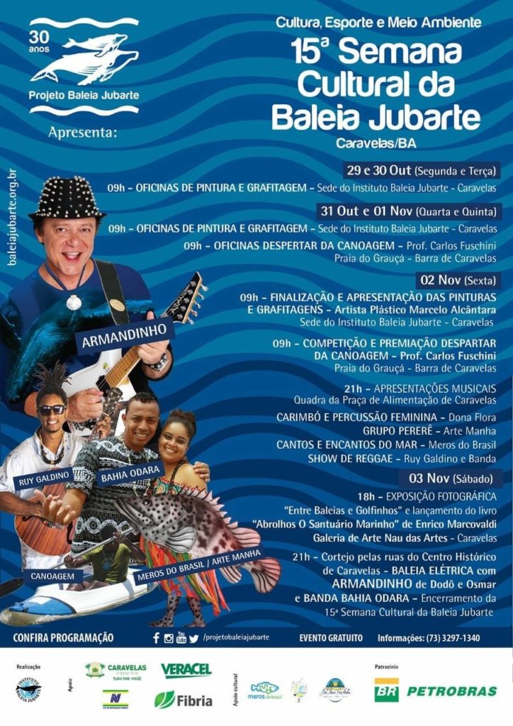 O evento é uma iniciativa do Projeto Baleia Jubarte, que está completando 30 anos à serviço da proteção desses animais marinhos, visitantes todos os anos do Arquipélago de Abrolhos, no litoral sul do estado da Bahia.