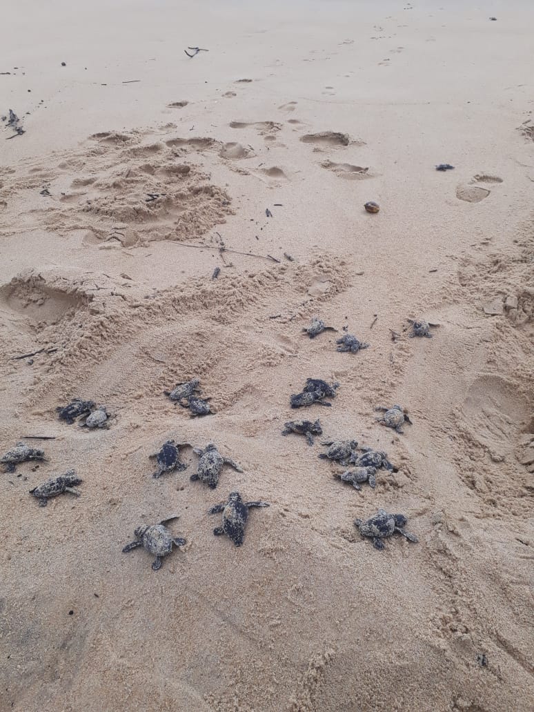 35 tartarugas marinhas nascem nas areias da praia de Mucuri