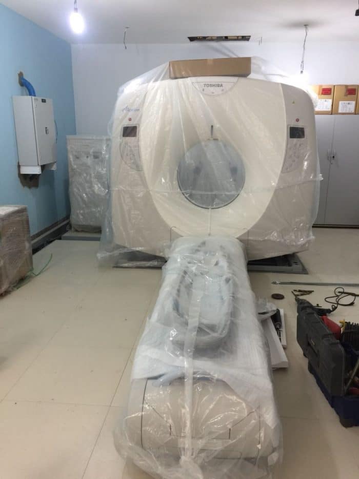 Aparelho de tomografia computadorizada pronto para entrar em funcionamento