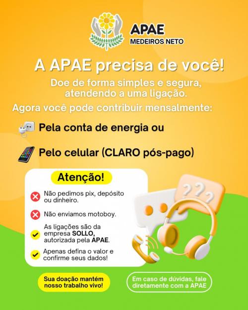 Diante do aumento de tentativas de fraude por telefone, a APAE de Medeiros Neto faz um alerta importante: