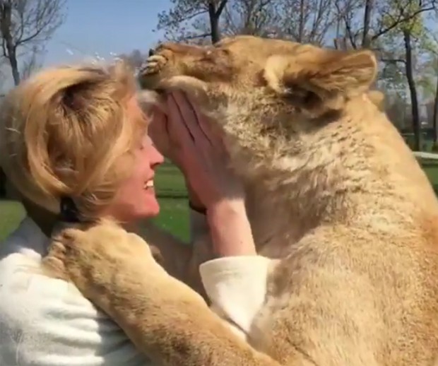 Duas leoas aparecem tendo uma reação emocionante no reencontro com a mulher que as adotou quando filhotes em um vídeo divulgado na internet nesta semana. As imagens mostram o quanto os animais  ficaram felizes ao revê-la sete anos depois de serem entregues a um zoológico na Suíça.