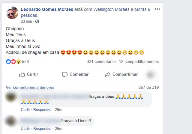 Em uma rede social, o irmão de Eduardo, Leonardo Gomes Moraes comemorou o retorno. Após a notícia ser confirmada pela família, uma multidão se formou na porta da casa.