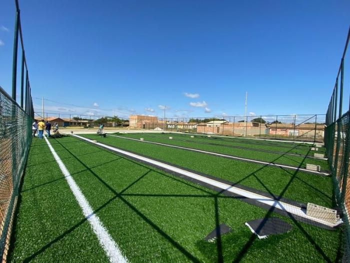 A obra, que está em fase de conclusão, garantirá em breve aos atletas e demais amantes do esporte medeirense um novo equipamento voltado para jogos – a primeira quadra dessa modalidade.